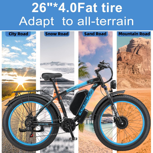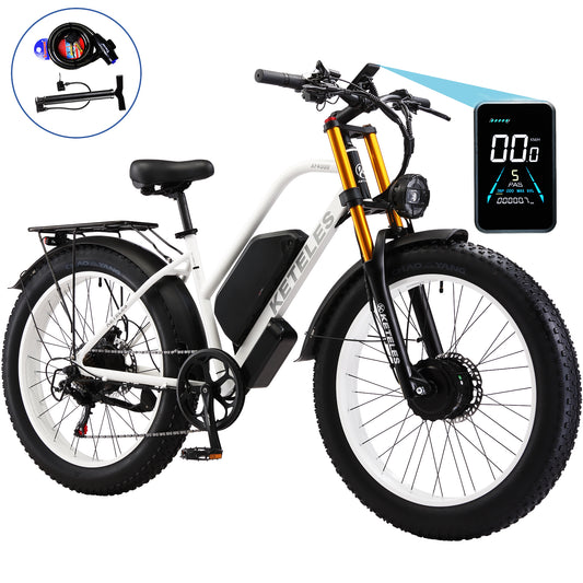 KETELES XF4000 2000W Adult Fat Tire Electric Bicycle, 26'' Dual Motor AWD E-Bike with 23AH Removable Battery, 7-Speed Gears, 32MPH Max Speed, 80-Mile Range - Ideal for Mountain, Beach, Snow Riding