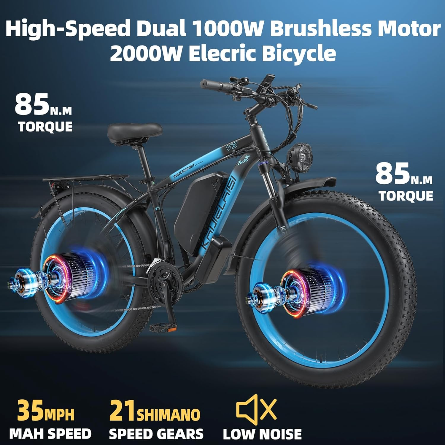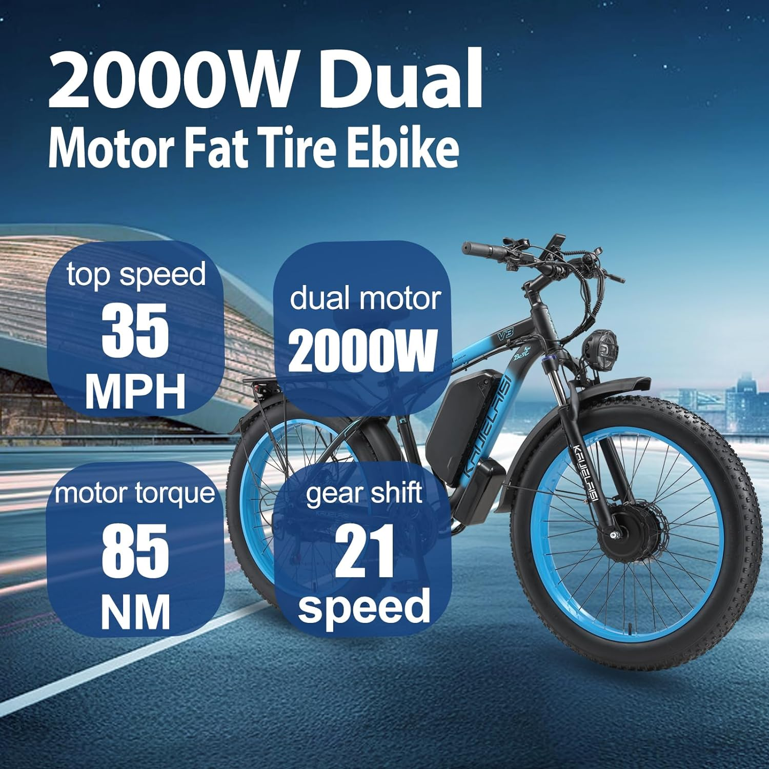2000W Doppelmotor Elektrofahrrad für Männer/Frauen 26 Zoll Fat Tire Mountain E Bike für Erwachsene 35 MPH 23AH 48V Akku Fahrrad 21 Gang Offroad Mountain Snow Ebike