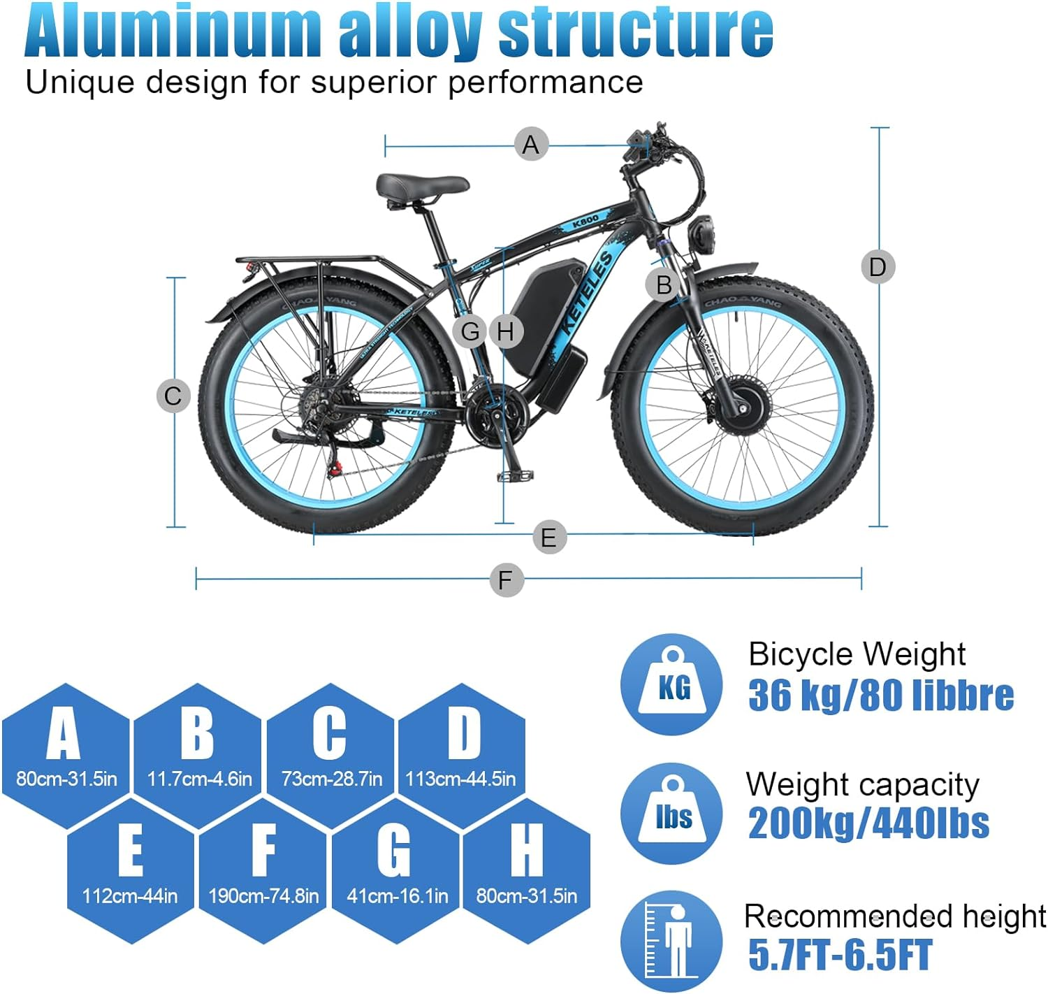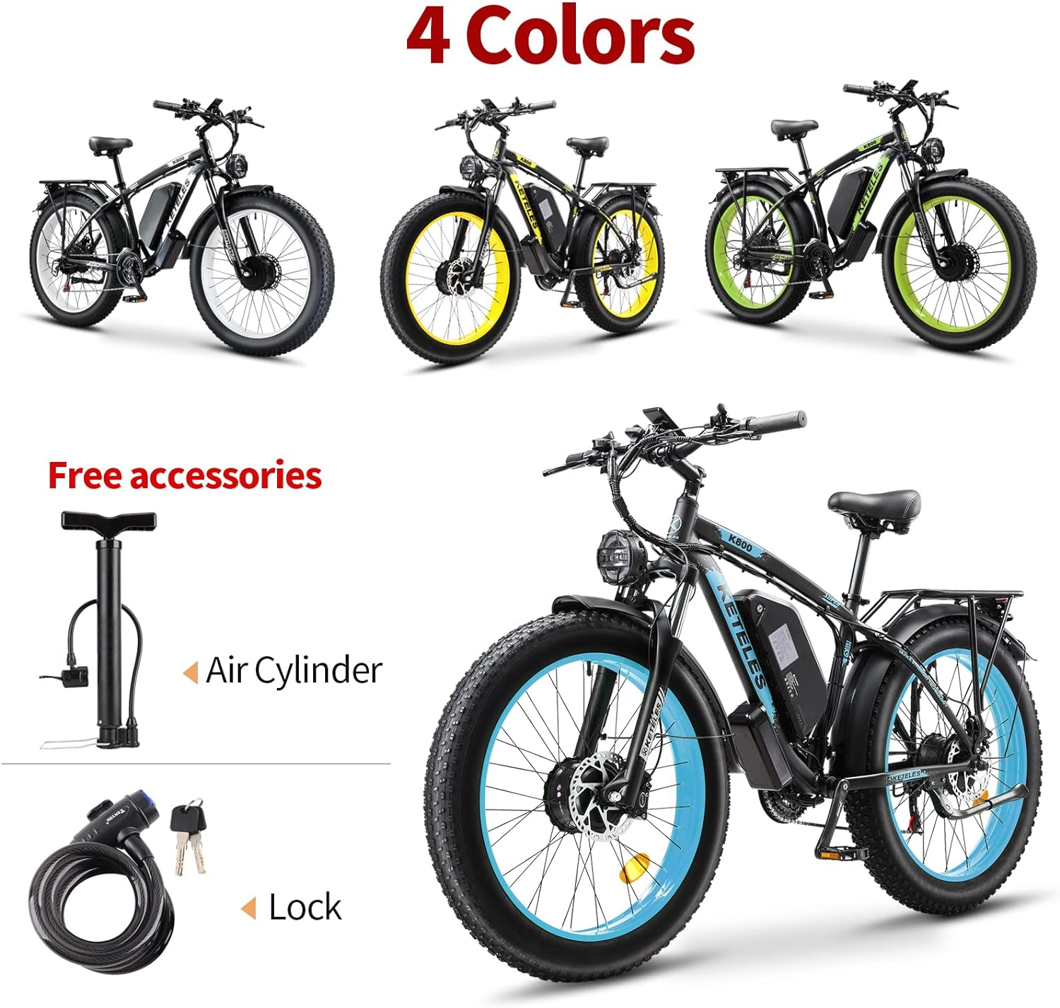 KETELES K800 2000W Elektrofahrrad mit Doppelmotor für Erwachsene – 26-Zoll-Fettreifen, herausnehmbarer 23-Ah-Akku, 33 MPH Geschwindigkeit, strand- und schneetaugliches Mountainbike