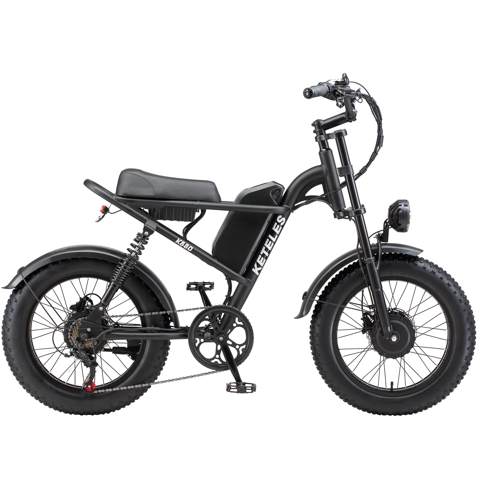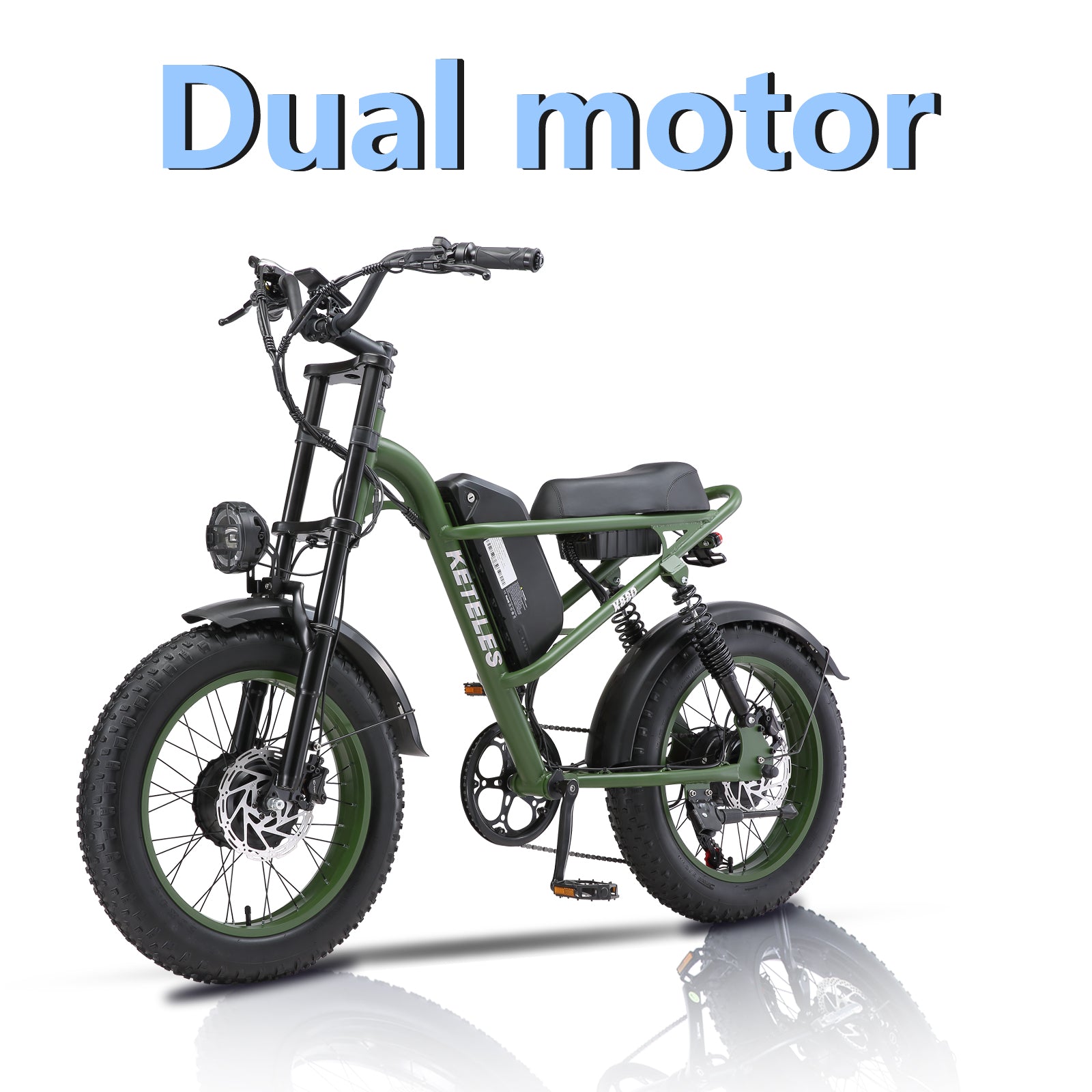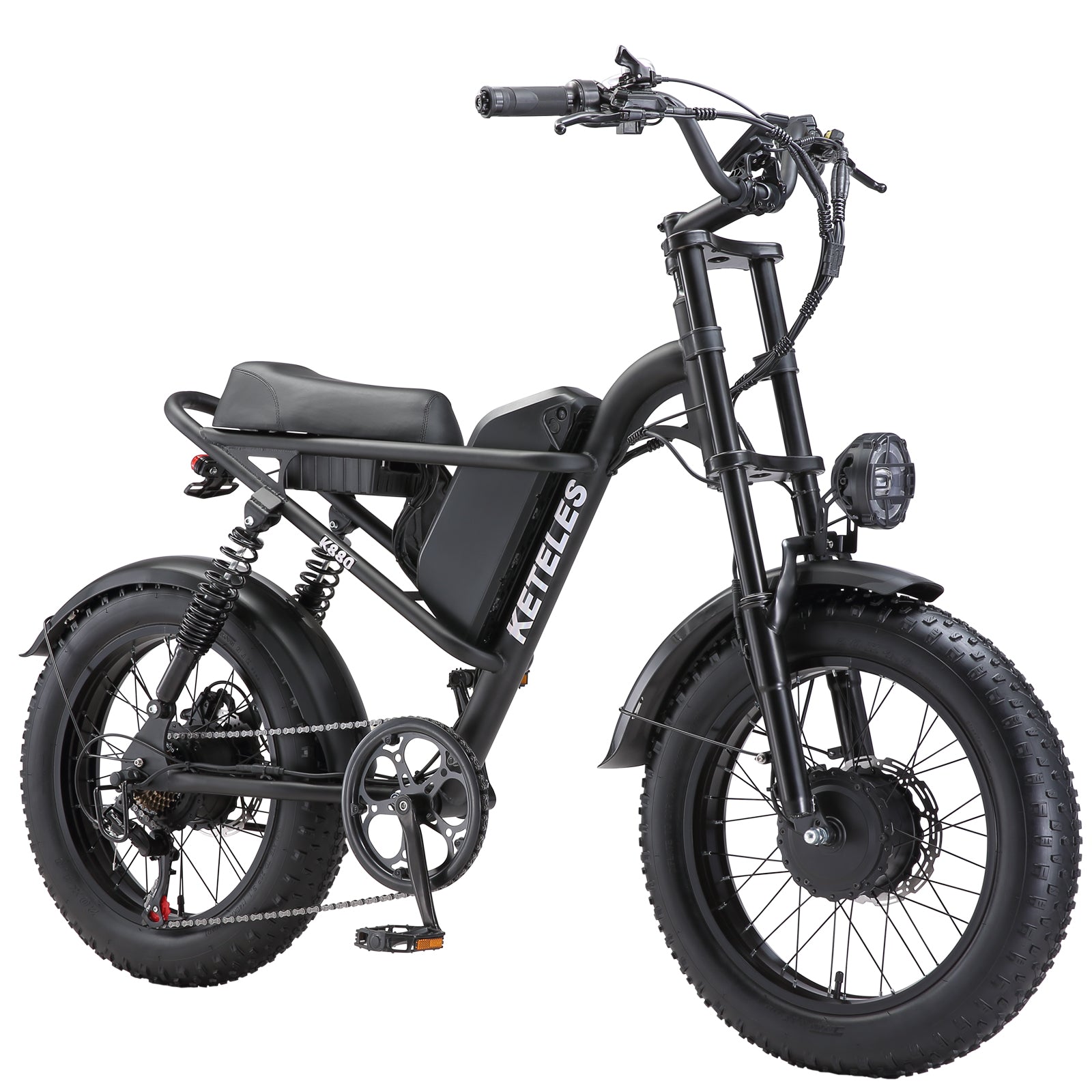 KETELES Electric Bike for Adults, Moped Style Dual Motor Ebike Full Suspension e-bike 20"X4.0" Fat Tire Electric Dirt Bike 2000W AWD Electric bicycle 48V 23AH Removable Battery Hydraulic Disc Brake