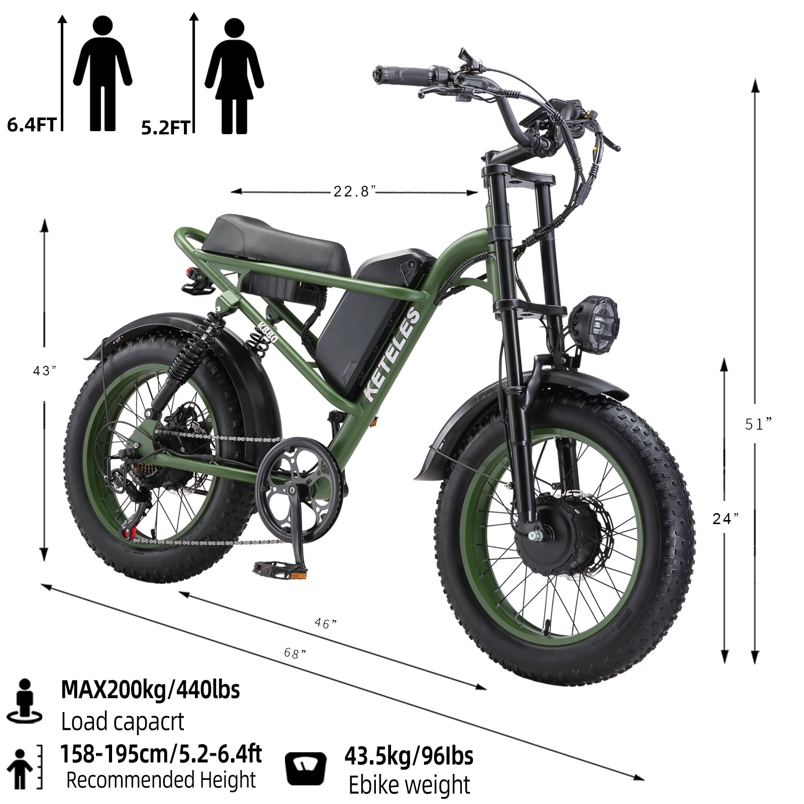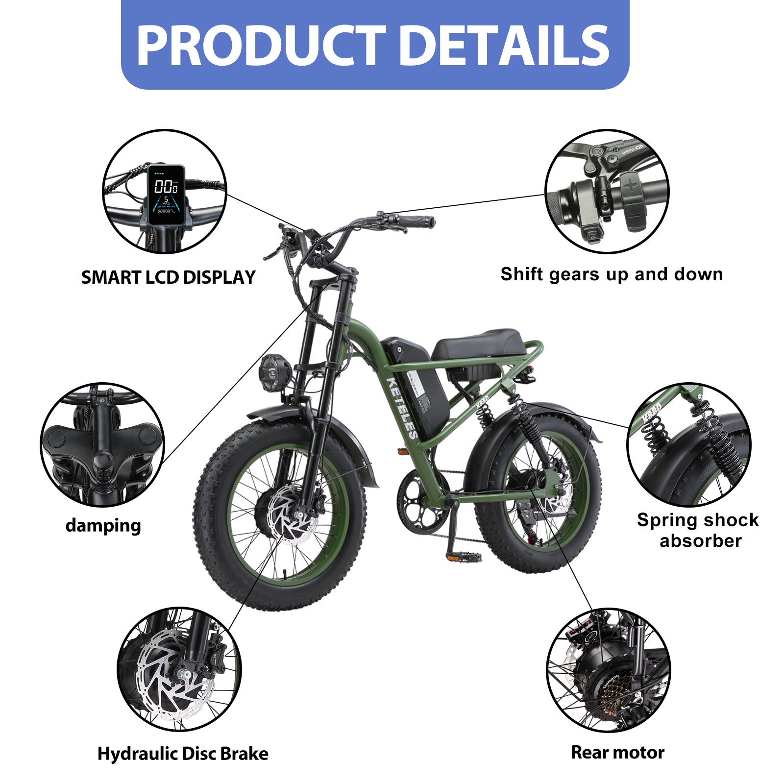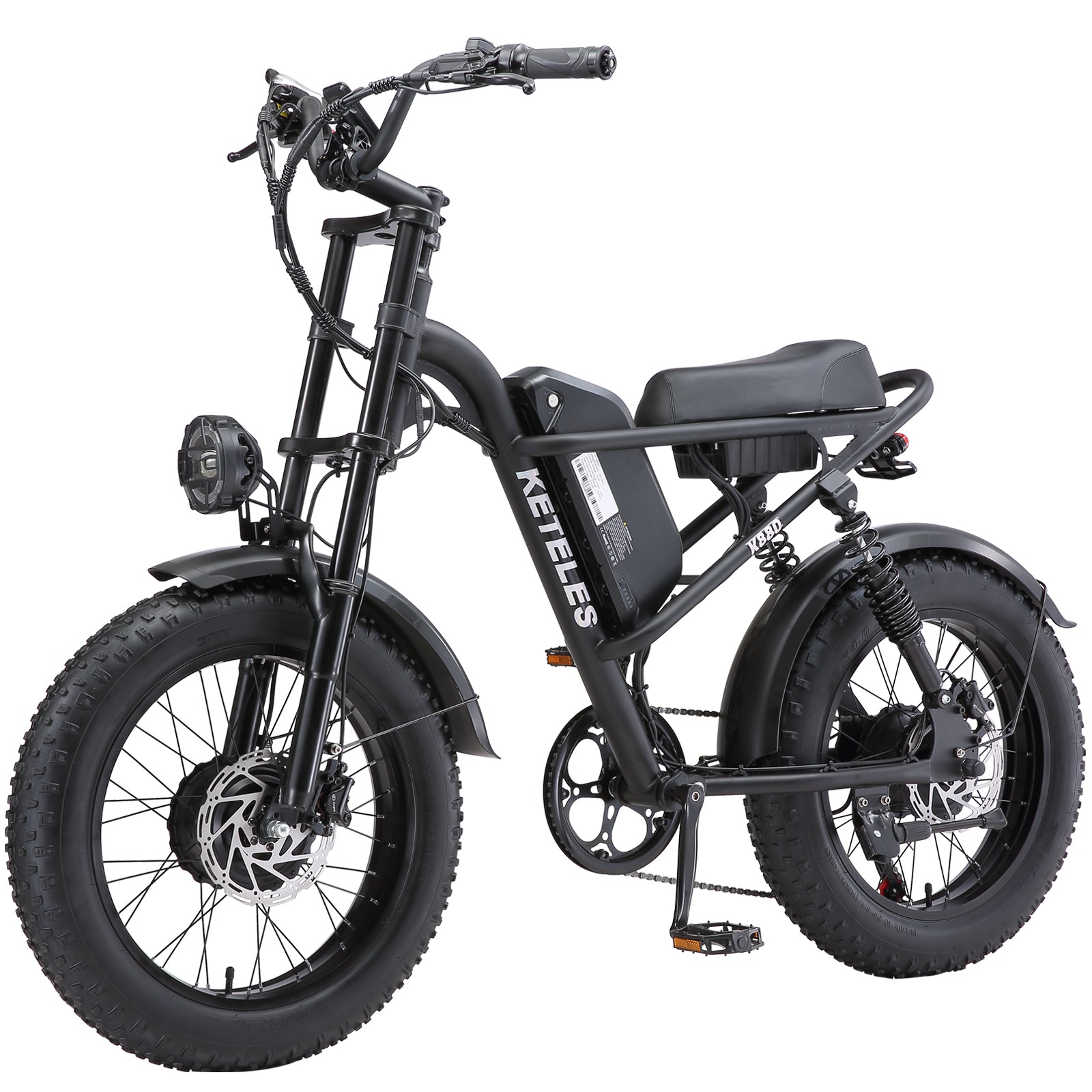 KETELES Electric Bike for Adults, Moped Style Dual Motor Ebike Full Suspension e-bike 20"X4.0" Fat Tire Electric Dirt Bike 2000W AWD Electric bicycle 48V 23AH Removable Battery Hydraulic Disc Brake