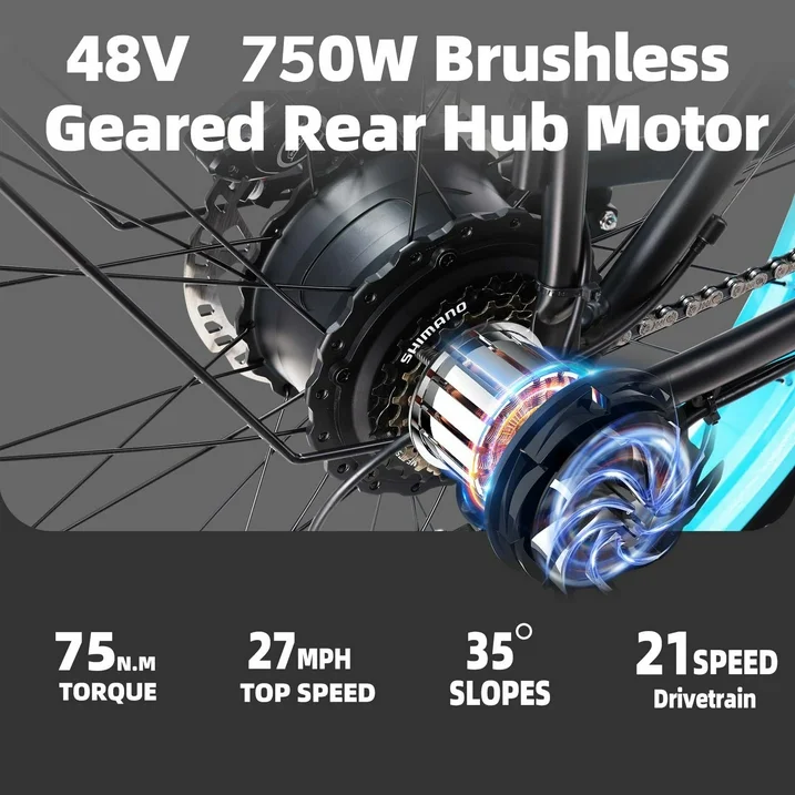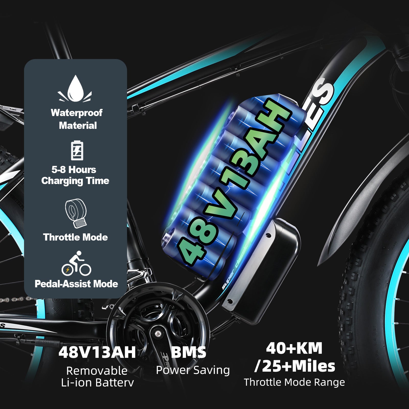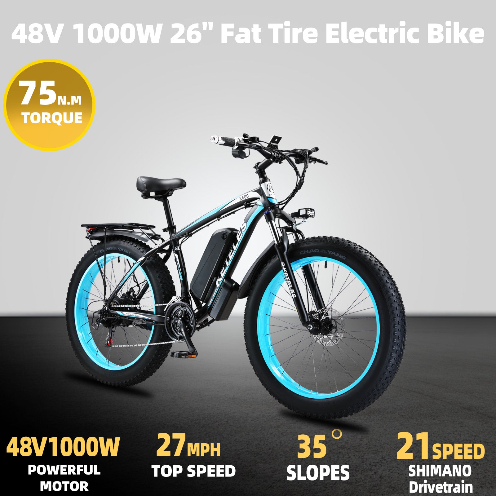 KETELES k800 1000W Fat Tire Electric Bike for Adults - 26 Inch Mountain Ebike with 28 MPH Speed, 13AH 48V Removable Battery, 21-Speed Gear System - Ideal for Off-Road Adventures
